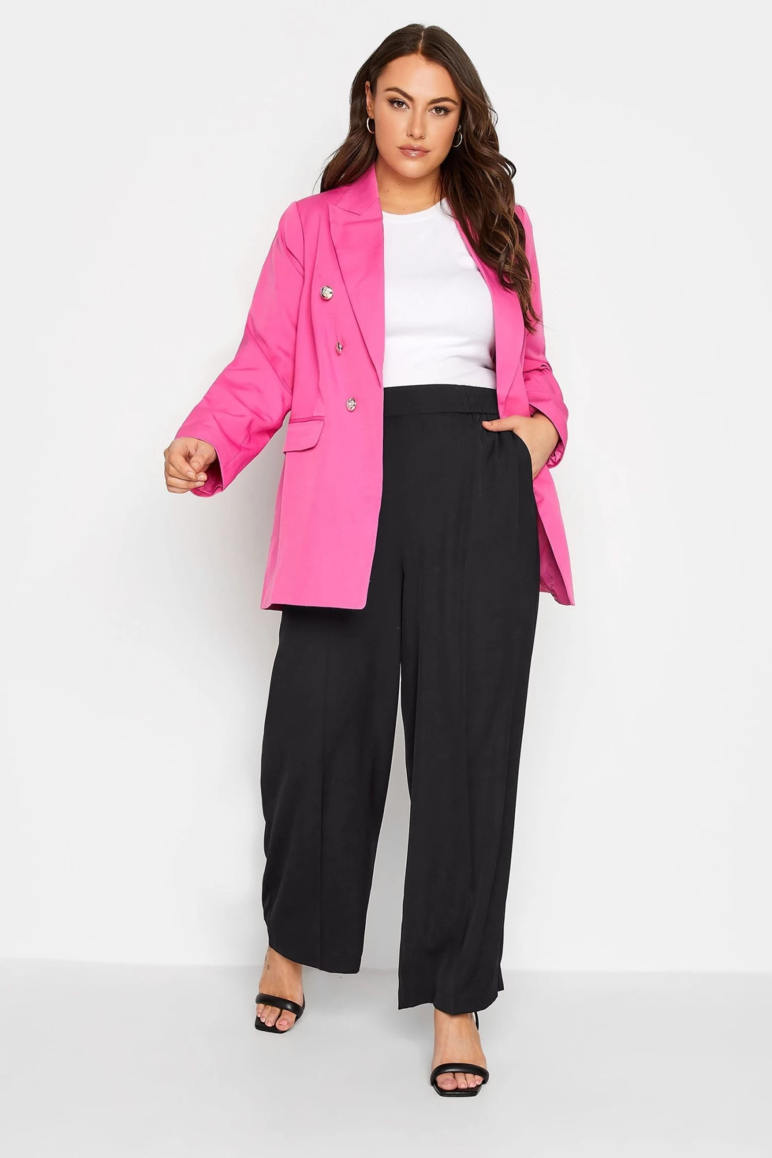 For the office and beyond. These new-in trousers feature an elasticated waistband in a pull-on style with two side pockets, complete in a high-waisted, wide leg fit. Finish the look with a t-shirt and trainers for a smart casual look. Why We Love It: A new season essential.